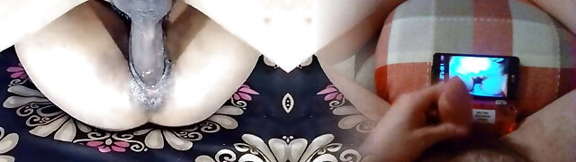 Small fuckslut cums on a large cock.