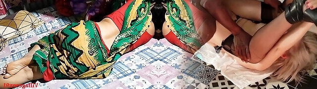 Bengali Bhabhi, wearing a maxi, pressed her fun bags a lot and quenched the itch of her snatch.