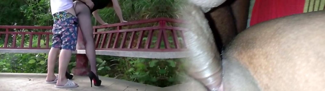 Insatiable Chinese wife dressed in tights and ravaged in public park