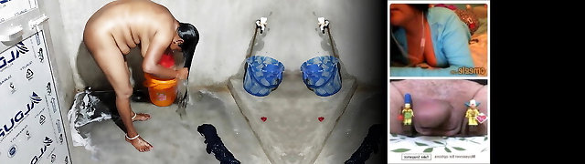 Step-mother taking bath in bathroom and i saw how she bath her ample boobs and her pussy