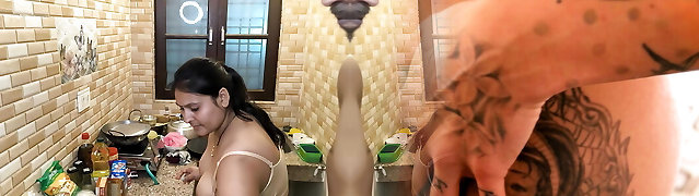 Indian wife big boobs kissing ass