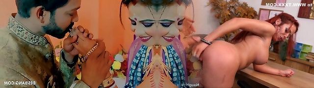 Desi Indian Step Father penalizes his young 18+ step daughter-in-law after he sees her having sex with a dude