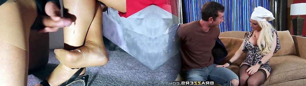 2 women dual squad a man sausage in restrain bondage