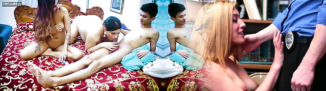 señorita profesora caliente y sexy y viejo padrastro le enseña a su hijo virgen cómo follar por primera vez