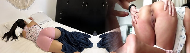 My homie's stepbrother's pervert enters the room and fucks me noiselessly... I hope he doesn't hear me