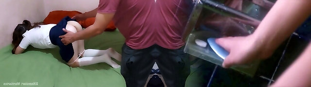 oh no! teen ragazza studentessa scopre la sua sorellastra cazzo con il suo patrigno quando lei torna a casa