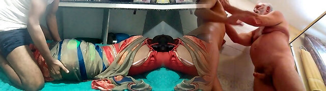 tette enormi indiano milf strisce saree choli e scopa con devar ji