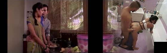 indiano duo romanticismo in cucina-saree gobba-saree sollevato e culo schiaffeggiato