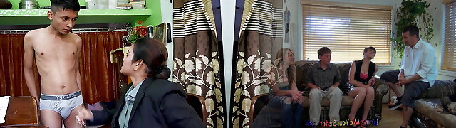 Sis enjoyed with her naughty stepbrother while getting body massages