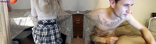 Brother changed his mind when younger stepsis changes school uniform in front of him